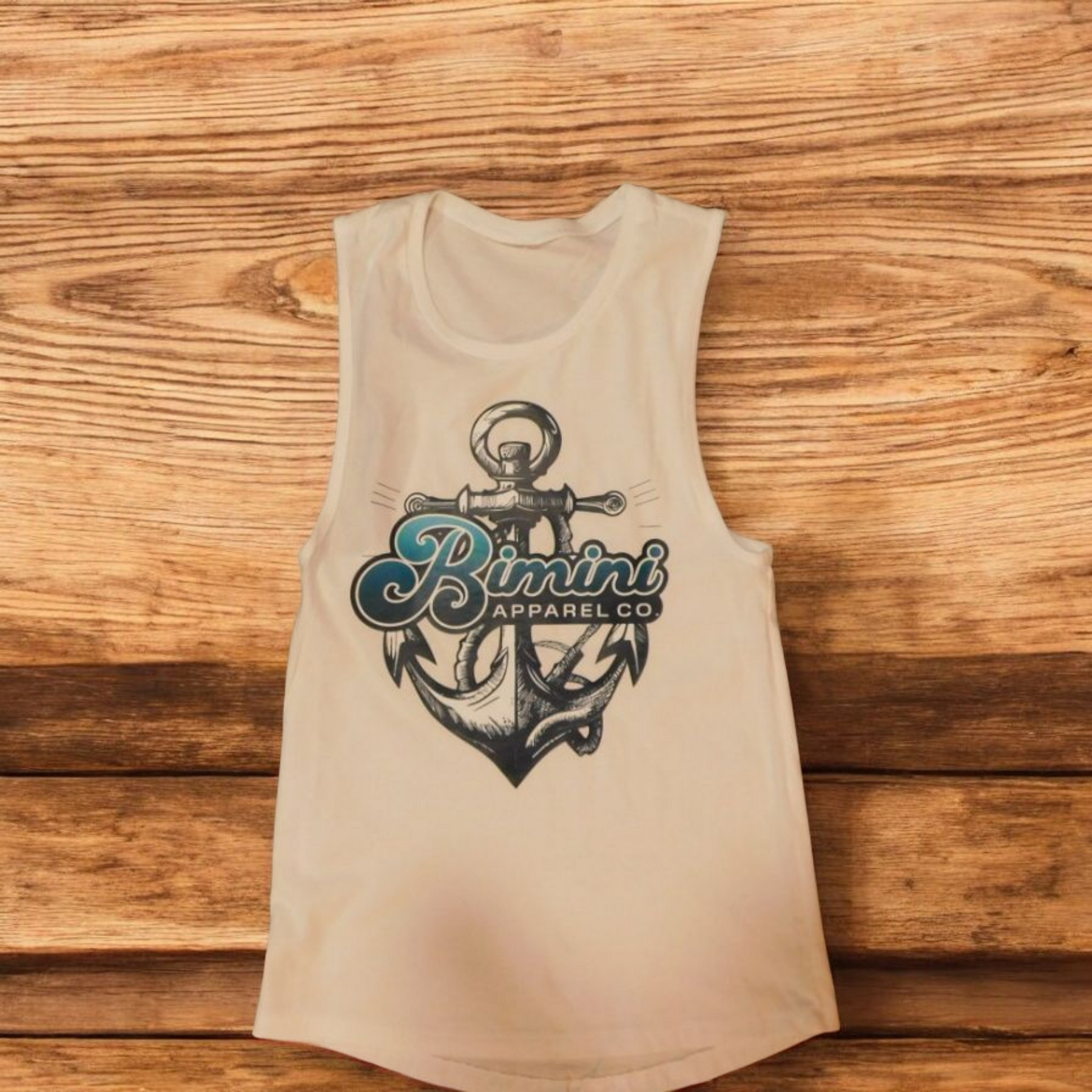 Make a bold statement with the Bimini Classic Anchor Muscle Tank – where timeless nautical vibes meet effortless modern style. Featuring a hand-drawn vintage anchor and bold Bimini Apparel Co. logo, this tank is designed for women who feel at home on the water. Whether you’re boating, beach-hopping, or just living that dockside lifestyle, this tank delivers confidence, comfort, and unmistakable coastal cool.
