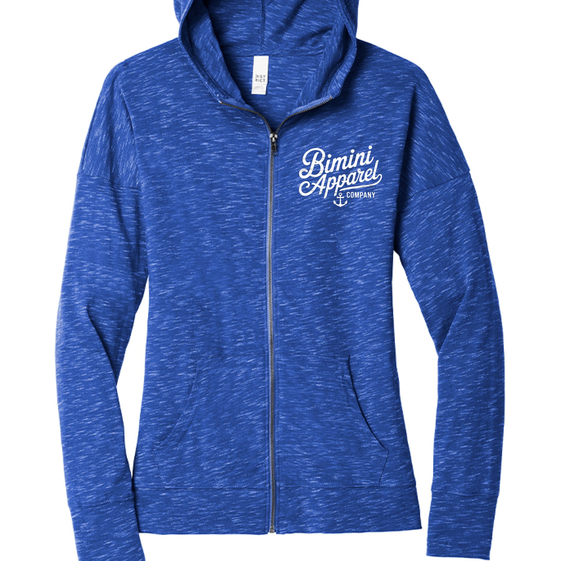 Lightweight comfort that keeps you anchored in style. The Mooring Full Zip is designed for women who move with the tide — effortless, versatile, and ready for anything. Crafted from a soft, breathable fabric blend, it layers perfectly over your favorite tee or tank. The clean left-chest Bimini logo and relaxed hood add just the right touch of coastal cool. From early morning coffee runs to sunset walks on the dock, The Mooring Full Zip is your everyday essential for laid-back living.